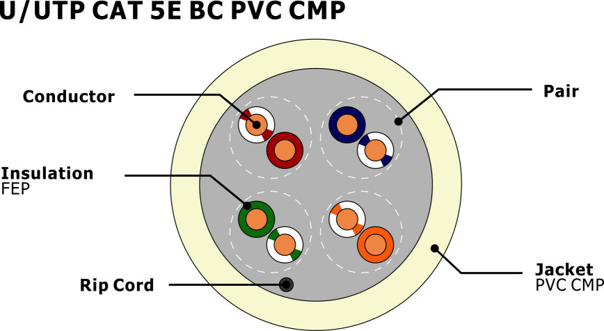 | Bouclier: | UTP, paire tordue non blindée | Nom du produit: | U/UTP CAT5E |