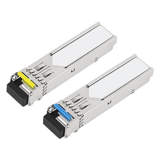 1.25G BIDI SFP TX1310/RX1550nm(TX1550/RX1310nm) 10KM LC SMF Émetteurs-récepteurs à fibre optique Small Form Factor Pluggable (SFP) sont compatibles avec le Small Form Factor Pluggable Multi-Sourcing Agreement (MSA). L'émetteur-récepteur se compose de cinq sections : le pilote LD, l'amplificateur limiteur, le moniteur de diagnostic numérique, le laser DFB et le photodétecteur PIN. La liaison de données du module prend en charge jusqu'à 80KM dans une fibre monomode 9/125um.